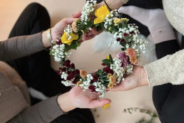 Und so widme ich diesen Kranz den Kräften, Mutter Erde, Vater Himmel, Großvater Sonne, Großmutter Mond, dem Feuer, dem Wind, dem Wasser, der Erde und allen Wesen.
