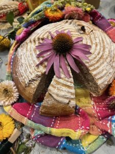 Wir haben etwas über alte Bräuche, Ritualgebinde, der Augustmagie, den Frauendreißiger und Wetterkräuter gehört, sind eingetaucht in ein altes Wissen und haben uns verbunden mit etwas ursprünglichem in uns. Der Kräuterduft und die Energie der Schnitterin durchflutet den Raum und in berührenden Momenten wurde das Brot miteinander geteilt bei dem wir uns an die großen Kornerntefeste aus früheren Zeiten angebunden haben .
