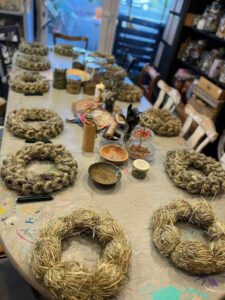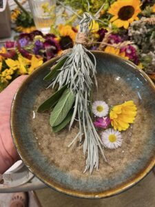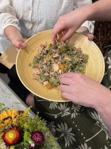Wünsche und Segen wurde in unsere Gebinde hineingewoben, es wurde gelacht, erzählt, geteilt in einer wunderbaren Verbundenheit wo jede einfach sein durfte, mit allem von sich da sein konnte und etwas in uns entzündet wurde und die Kraft der Dankbarkeit fühlbar in unsere Herzen geflossen ist.