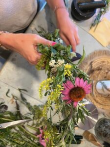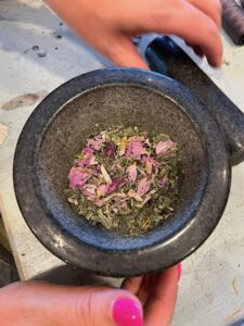 Anschließend durften wir in den Räumen von Kellergedöns by Inka Volk zusammenkommen um aus den Pflanzen die uns geschenkt wurden, herrliche duftende Räuchermischungen und Kräuterbündel des Sommers zu zaubern.