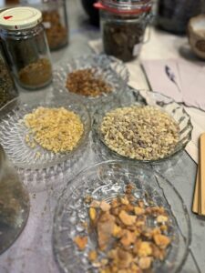 So gestärkt tauchten wir in eine kleine Räucherkunde für die Rauhnächte ein und mischten ganz ureigene Räuchermischungen, ganz auf die Bedürfnisse und Wünsche jeder einzelnen wunderschönen Frau abgestimmt.