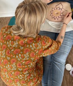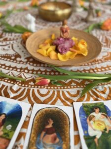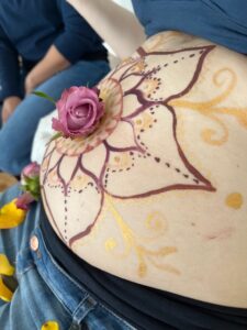 So darf sie in einen heiligen Raum eintauchen der ein tiefes Band webt, Vertrauen schenkt, sie darf empfangen, sich tief nähren um noch tiefer in ihrer Erfahrung als Mutter anzukommen und die ihren Weg in die Geburt stärken.