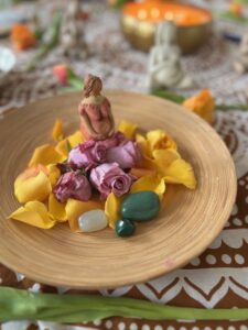 Es darf sich ein Raum öffnen wo sie sich voller Vertrauen zu tiefst gesehen fühlt, sie darf liebevolle Herzensberührungen und Seelengeschenke aus ihrem Kreis empfangen, es dürfen heilsame Segensworte empfangen werden die tiefe Seelengeschenke sind.